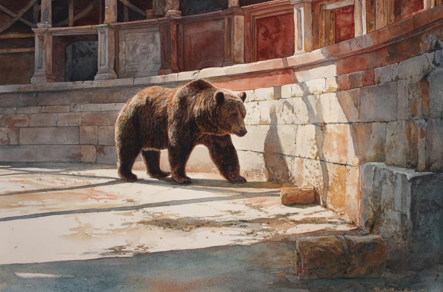 Medvědi měli v římských arénách různé role: bojovali s gladiátory i mezi sebou, byli využíváni k popravování odsouzenců a předváděli nacvičená čísla. Tento konkrétní jedinec byl s největší pravděpodobností využíván opakovaně, což odpovídá představě, že nepředstavoval „spotřební zboží“, ale spíše součást pravidelných představení.