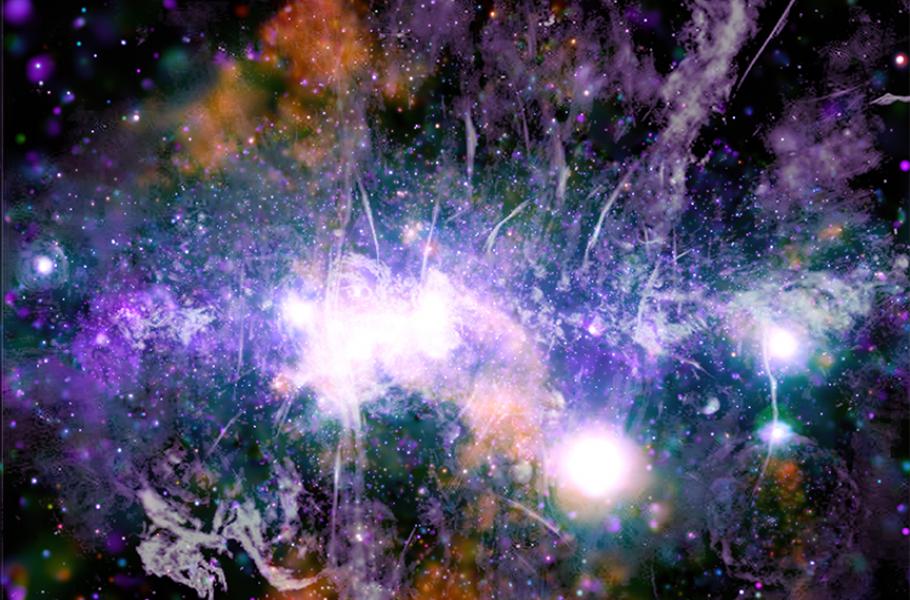 Tým americké vesmírné rentgenové observatoře Chandra v v těchto dnech zveřejnil unikátní složený snímek centra Mléčné dráhy, který je založený na rentgenových datech pozorování observatoře Chandra a rádiových pozorováních pozemní soustavy MeerKAT v jižní Africe. Snímek odhaluje nezměrná mračna horkého plynu a mohutná magnetická pole, která protkávají okolí supermasivní černé díry.