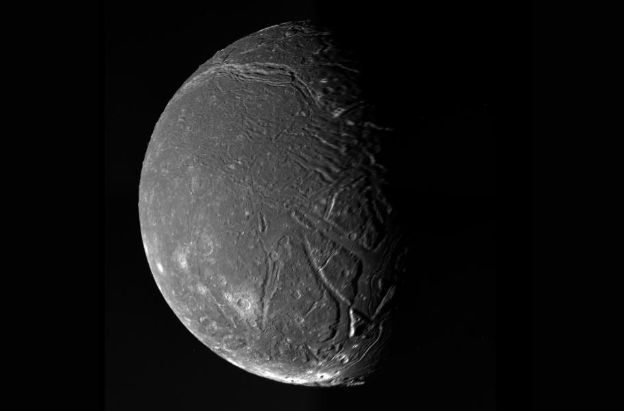 Uranův měsíc Ariel možná pod svým povrchem ukrývá kapalný oceán