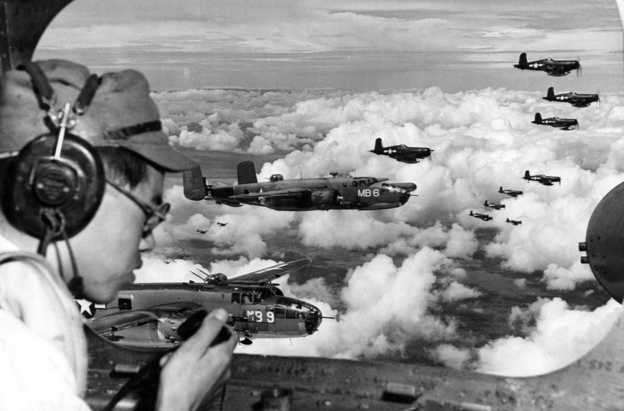 Na snímku proslulého válečného fotografa Davida Douglase Duncana vidíme amerického navigátora japonského původu, Minoru Wada během bojů o Filipíny v roce 1945. Tento muž vyrostl v Japonsku, kde také po určitou dobu sloužil v armádě. Padl do zajetí právě na Filipínách, ale nabídl své služby Američanům. Zde navádí americké bombardovací letectvo k úspěšnému náletu na velitelství japonské 100. divize. Jeho motivací k tomuto činu bylo minimalizovat ztráty na životech a uspíšit konec války v Pacifiku.
