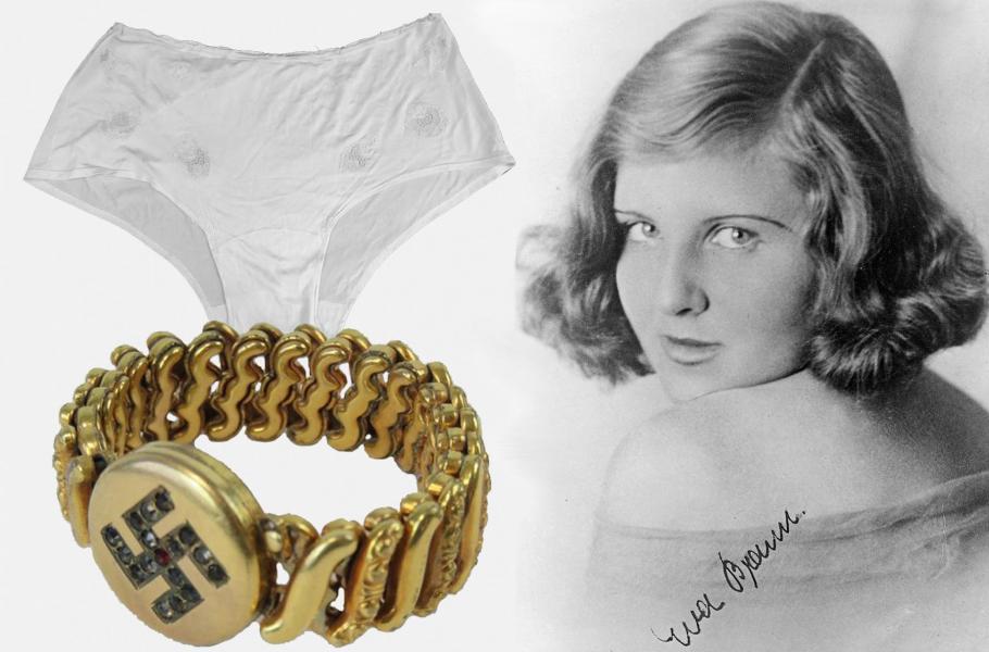 Anglická aukční síň Humbert & Ellis vydražila spodní prádlo manželky Adolfa Hitlera. Neznámý kupec za kalhotky a noční košili zaplatil 180 tisíc korun.