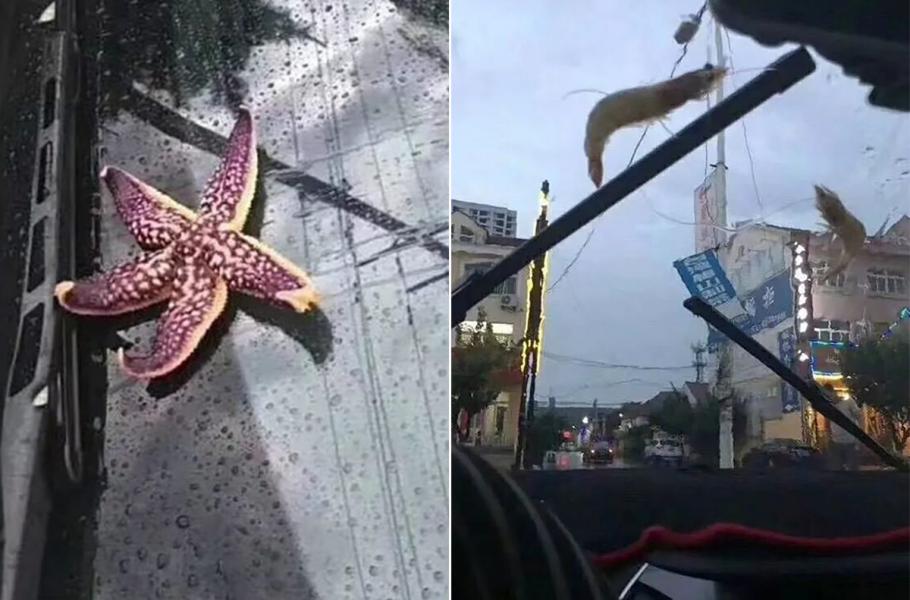 Zní to sice kapku strašidelně, ale déšť mořských živočichů z nebe nad čínském Čching-tao nebyl předzvěstí blížícího se konce světa. Za neobvyklou nadílku mohla bouře a silný vítr, který chobotnice, krevety, mořské hvězdice a další živočichy přivál z moře nad pevninu. Podle údajů meteorologů dosahoval vítr v nárazech rychlosti až okolo 35 metrů za sekundu (125 kilometrů v hodině).
