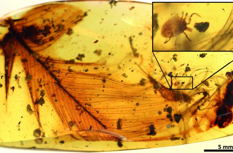 Jantar z Myanmaru, čili Barmy, starý 99 milionů let, ukrýval poklad. Našly se v něm pozůstatky opeřených dinosaurů tehdejší doby a mezi nimi pěkně nasátá klíšťata. Každý si hned jistě vzpomene na Jurský park a dinosaury vzkříšené z krve objevené ve hmyzu z jantaru.