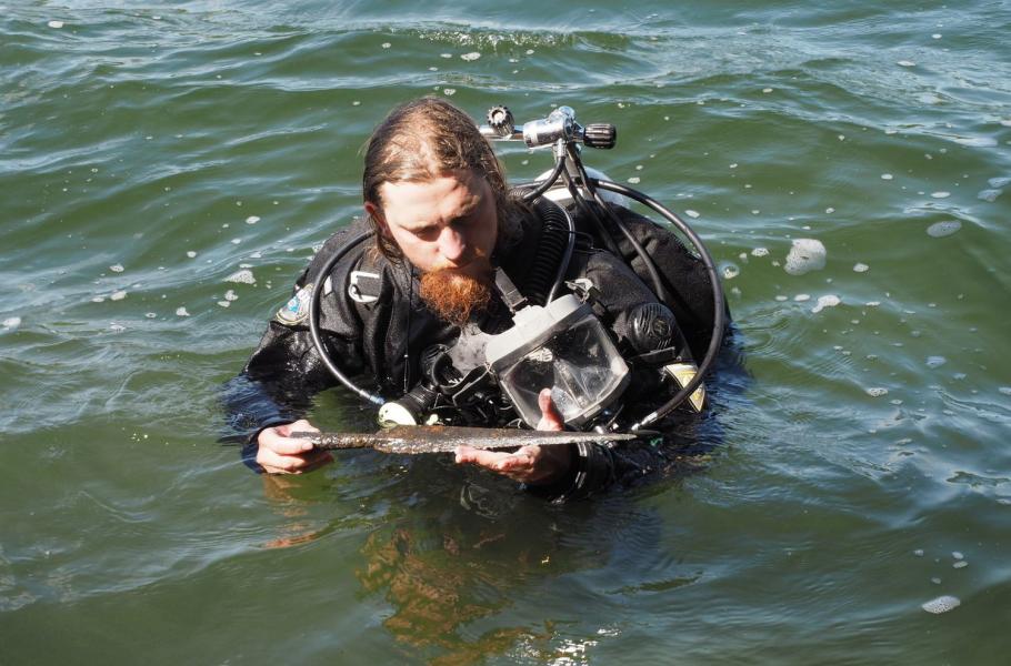 V polském jezeře Lednica objevili archeologové unikátně zdobené středověké kopí