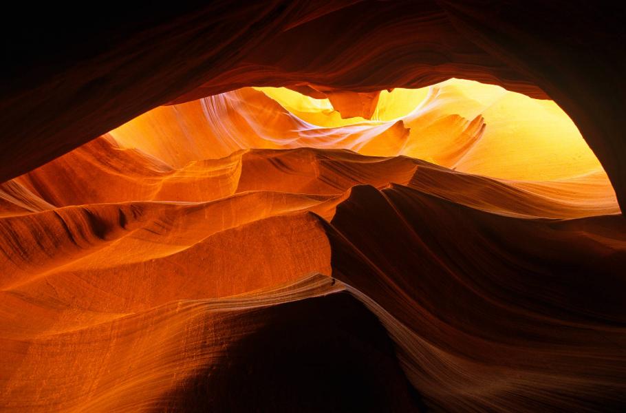 Upper Antelope Canyon není příliš dlouhý. Již po čtyři sta metrech přibližně dvacet až třicet metrů hluboká a poměrně temná soutěska zase končí. Dopoledne sem proniká málo přímého světla, ale dopadající paprsky se od stěn odrážejí a postupně pronikají i do spodnějších partií. Osvětlený pískovec se nejprve rozzáří do hnědých, potom oranžových a nakonec zářivě červených tónů. Přímo před očima dochází k neustálým barevným změnám, kdy se do „uměleckého díla“ zamíchají i bílá, žlutá, nachová, fialová a modrá. S pokročilou dobou získávají barvy na intenzitě.