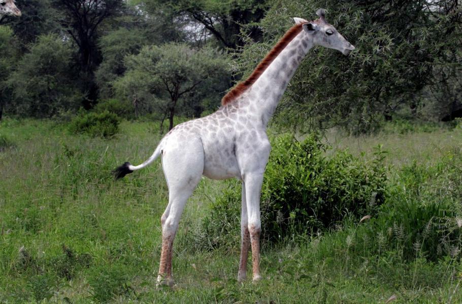 Mimořádně vzácnou téměř bílou žirafu poprvé objevil v dubnu loňského roku doktor Derek Lee - ekolog a zakladatel Wild Nature Institute (WNI). Nyní na Omo, jak bílou žirafu pojmenoval, narazil znovu. Omo je asi patnáctiměsíční samice, která trpí specifickou poruchou pigmentu – tzv. leucismem. Toto genetické onemocnění se projevuje ztrátou všech typů kožních pigmentů (na rozdíl od albinismu, u nějž jde o poruchu jediného pigmentu - melaninu). Při leucismu chybí zvířatům pigmentové buňky buď po celém povrchu těla, nebo pouze na jeho částech a mohou si tedy (jak v případě žirafy Omo) částečně zachovat kresbu těla. Světlé zbarvení Omo ale dělá vrásky ochráncům zvířat, kteří se obávají, že se stane terčem pytláků. Vzácná žirafa je přitom pravděpodobně jediná svého druhu.