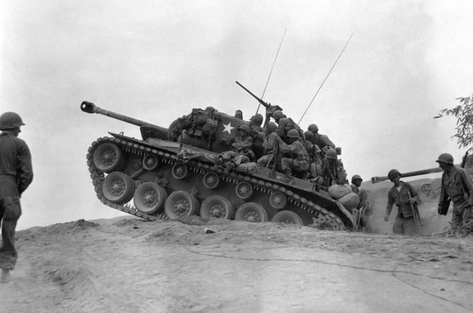 Po pěti letech míru se ve východní Asii znovu rozhořela válka. Dne 25. června překročila severokorejská vojska hranice a vpadla do Jižní Koreje. Jihokorejská armáda zaostávala za tou severokorejskou jak ve výcviku, tak i v technice. Naproti tomu komunističtí vojáci dostali zbraně od Sovětského svazu, který se sice oficiálně ze země stáhl, ale nadále ji považoval za svoji sféru vlivu.