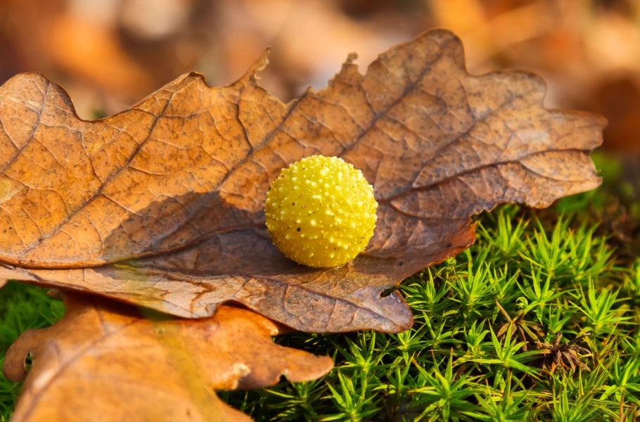 Tento útvar známe i z našich lesů – pravděpodobně jde o hálku žlabatky dubové (Cynips quercusfolii) na listu dubu letního (Quercus robur). (foto: Shutterstock)