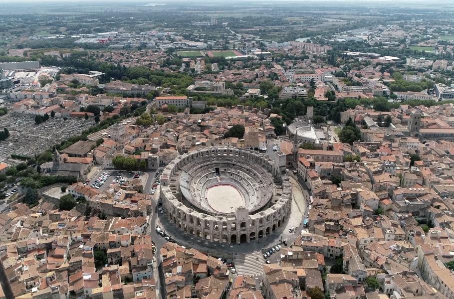 Nejnavštěvovanějším turistickým cílem ve městě je zřejmě gladiátorská aréna, kam se vešlo až 20 tisíc diváků. Amfiteátr s vyvýšenými středověkými věžemi dnes patří k nejzachovalejším v Evropě a nabízí krásný výhled na celé Arles. Vyrostl mezi léty 80 př. n. l. a 90 n. l. a nese všechny architektonické rysy, jež vycházely z podoby právě dokončeného Kolosea v Římě. Střední kolbiště obklopují terasy a dvouúrovňové arkády, k nimž vede mnoho přístupových chodeb. Kruhové galerie se pak střídají s vertikálními pasážemi, horní zastřešující část už ovšem neexistuje.