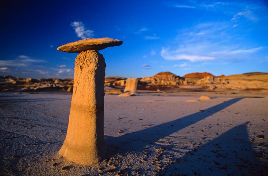 Oblasti badlands jsou skutečnou pokladnicí dávných dob. V rozlehlých jezerech se totiž spolu s nánosy zeminy ukládaly i ostatky pravěké vegetace a uhynulých živočichů. Přímo v Bisti Badlands jsme poměrně často nacházeli zkamenělé pravěké stromy – třísky, špalky, ale i celé kmeny. Vedle zkamenělých rostlin se dají v podobných usazeninách objevit i zkamenělé mušličky nebo škeble. A při trošce štěstí i kousek opravdového dinosaura. Cesta napříč touto nezkrocenou pouští bez značených cest je lemována neobyčejnými tvary a stopami pravěkého života.