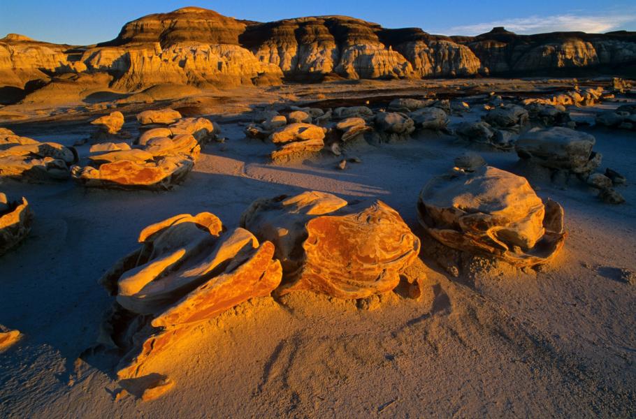 V Bisti Badlands leží místy kameny těch nejneobvyklejších tvarů – zbytnělé pokličky na štíhlých jílovitých nohách, viklany a kamenné koule. Některé kupky vypadají jako eskymácká iglú. Na jednom místě se nacházejí i pukající zaoblené kameny, které nám svou velikostí a tvarem připomínají obří dinosauří vajíčka těsně před vylíhnutím.