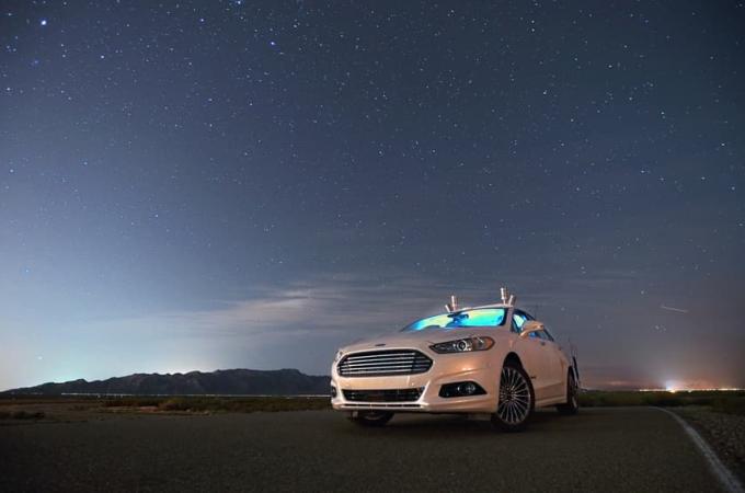 Autonomní automobil Ford jede v černočerné tmě. Používá k tomu LIDAR