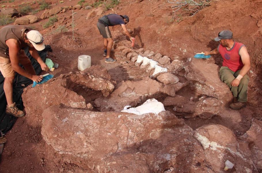 Ocasní obratle, části pánve a další kosti gigantického ještěra, který před 98 miliony lety brázdil dnešní provincii Neuquén v argentinské části Patagonie, našli odborníci v geologické formaci známé jako souvrství Candelerosna, která je na fosílie bohatá.