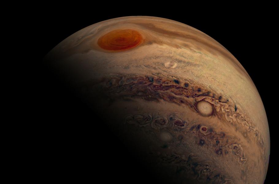 Velká rudá skvrna, jak ji zachytila v roce 2020 sonda Juno. (foto: Wikimedia Commons, NASA/Frigyes Erdosi Szucs, CC BY-SA 4.0)