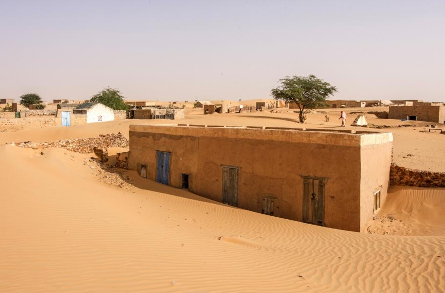 Chinguetti, stejně jako mnoho dalších sídel v regionu, ohrožuje stále se rozšiřující Sahara a není neobvyklé vidět napůl zasypané domy. Tak jako našinec na Vysočině v zimě odhazuje sníh, v arabské vesnici je třeba si prohrnout cestu pískem. Rozdíl spočívá v tom, že sníh roztaje, zatímco písek zůstává a nic ho nezastaví.