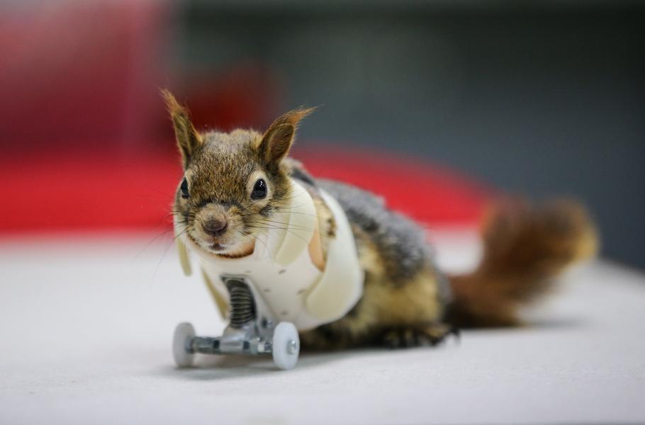 Veverka na kolečkách: Zraněný hlodavec získal náhradní přední končetiny