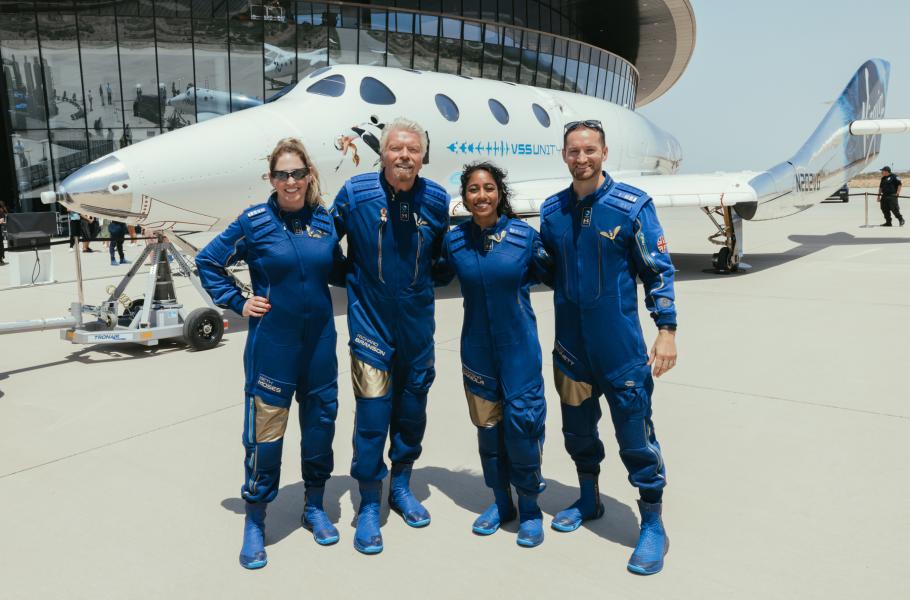 Po 16 letech výzkumu a testovacích letů byl včerejší, v pořadí dvaadvacátý, první s kompletní šestičlennou posádkou. Tu tvořili piloti Dave Mackay a Michael Masucci a čtyři „specialisté mise“ – šéfinstruktorka Beth Moses, viceprezidentka pro vládní záležitosti a výzkumné operace Sirisha Bandla, vedoucí provozní inženýr Colin Bennet a pochopitelně i majitel Virgin Galactic Richard Branson.