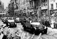 Na některých ulicích byly dokonce položeny na zem květiny jako koberce. Tento den se stal svátkem, byly dokonce zavřeny obchody, úřady i školy. Na tomto snímku Hitler projíždí Dlouhou ulicí.