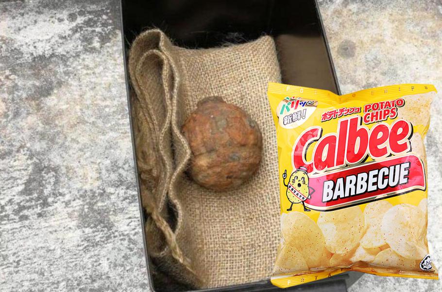 Pyrotechnický tým hongkongské policie zasahoval v továrně na chipsy společnosti Calbee: Mezi bramborami importovanými z francouzských polí se totiž objevil prvoválečný německý granát. Byl natolik zrezivělý, že mezi vykopané hlízy snadno zapadl.