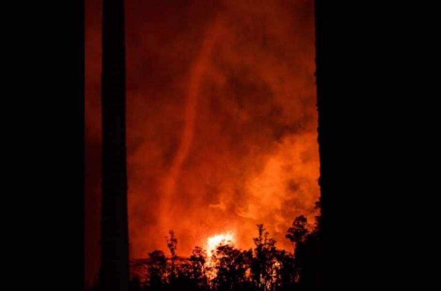 Když žhavá láva prudce ohřeje vzduch, může vzniknout přízračný vír připomínající malé tornádo