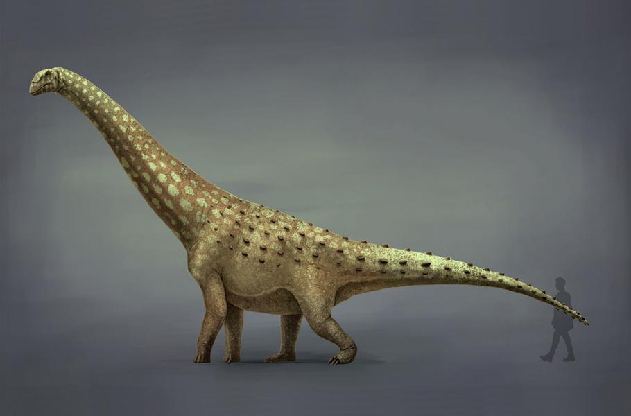 Australská fosilie sauropoda Diamantinasaurus matildae ukrývala obsah žaludku a střev. (ilustrace: Wikimedia Commons, Mario Lanzas, CC BY-SA 4.0)