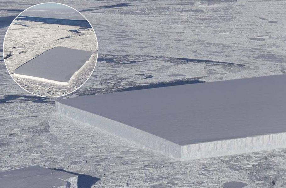Mnohá zákoutí internetu oblétla fotografie takřka perfektního ledového kvádru, kolem nějž se záhy vyrojila řada konspiračních teorií. Podle Kelly Bruntové z NASA se však jedná o „obyčejný“ tabulární ledovec, který se vyznačuje plochým povrchem. Snímek zachycuje čerstvě odlomený kus antarktického šelfu Larsen, jehož okraje ještě neošlehal vítr a nezasáhly vlny. Pravidelnost je navíc zčásti výsledkem vhodně zvoleného úhlu fotografie.