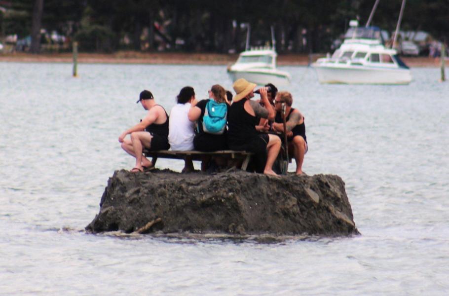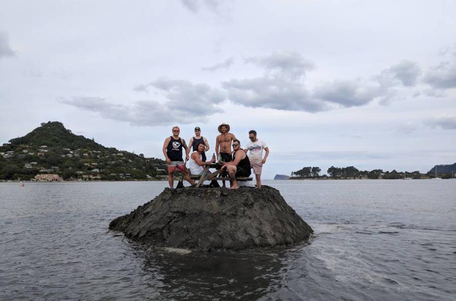 Smířit se s tím ovšem nehodlala skupinka místních, kteří si během odlivu vymodelovali v ústí řeky Tairua malý písečný ostrůvek. Na něj dopravili piknikový stůl, lavice a také zásobu alkoholu. Skupinka strávila na svém ostrůvku „v mezinárodních vodách“ oslavu silvestra bez omezení a užila si přípitek navzdory zákazu.