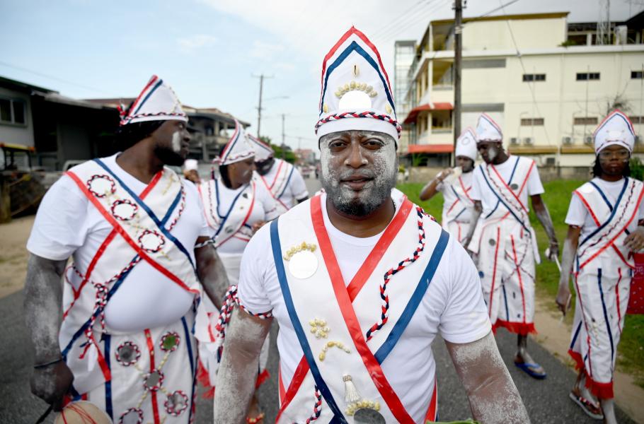 Trasa se v průběhu dvou dnů mění a vede ulicemi hlavního města Paramaribo. Lidé z okolních domů pak obvykle posedávají venku na židličkách, popíjejí místní rum, baví se s rodinou a tančí s účastníky průvodu. Starší usedlíci nezřídka oblékají klasické surinamské oděvy s historií sahající až do období kolonialismu, jež jsou barevné, nápadité i honosné. Kroje zvané koto tvoří výbavu kreolských žen, zatímco pánská alternativa pangi či pangani představuje barevnou látku přehazovanou přes rameno.