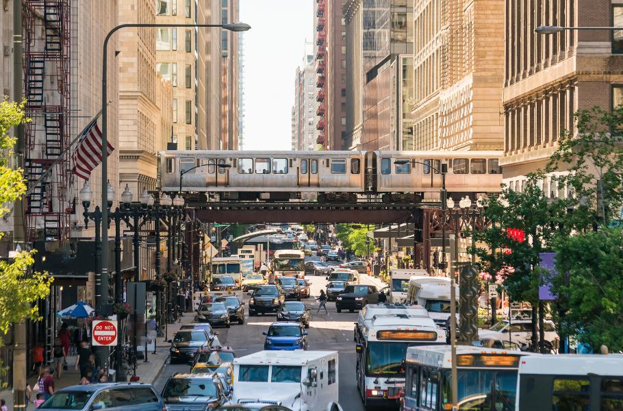 Vlaky projíždějící Chicagem po typických estakádách jste mohli vidět v mnoha filmech. | zdroj: Wikipedia (autor neznámý CC BY 2.5)