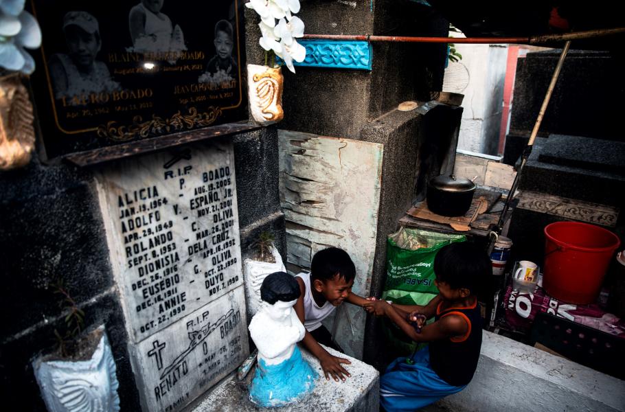 V přeplněné filipínské Manile se vyvinul zvláštní životní styl – bydlení mezi hroby. Chudí obyvatelé města hledají na hřbitovech levné útočiště a nebojí se tam vychovávat děti. Do neobvyklého kouta světa se vypravil fotograf David Těšínský