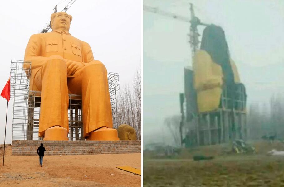 Obří socha diktátora Mao Ce-tunga, která vyrostla v minulých dnech v čínské provincii Che-nan, neměla dlouhou životnost. Čínské úřady ji nechaly zbourat jen pár dnů po velkém ohlasu, který stavba vyvolala ve světových médiích i v samotné Číně. 37metrová socha, jejíž výstavba údajně vyšla na 3 miliony jüanů (přibližně 11,5 milionu korun), se stala terčem vtipů, nepochopení i černého humoru. V oficiálním prohlášení, uveřejněném v čínském deníku The People’s Daily, označily úřady jako důvod jejího zbourání chybějící povolení ke stavbě.